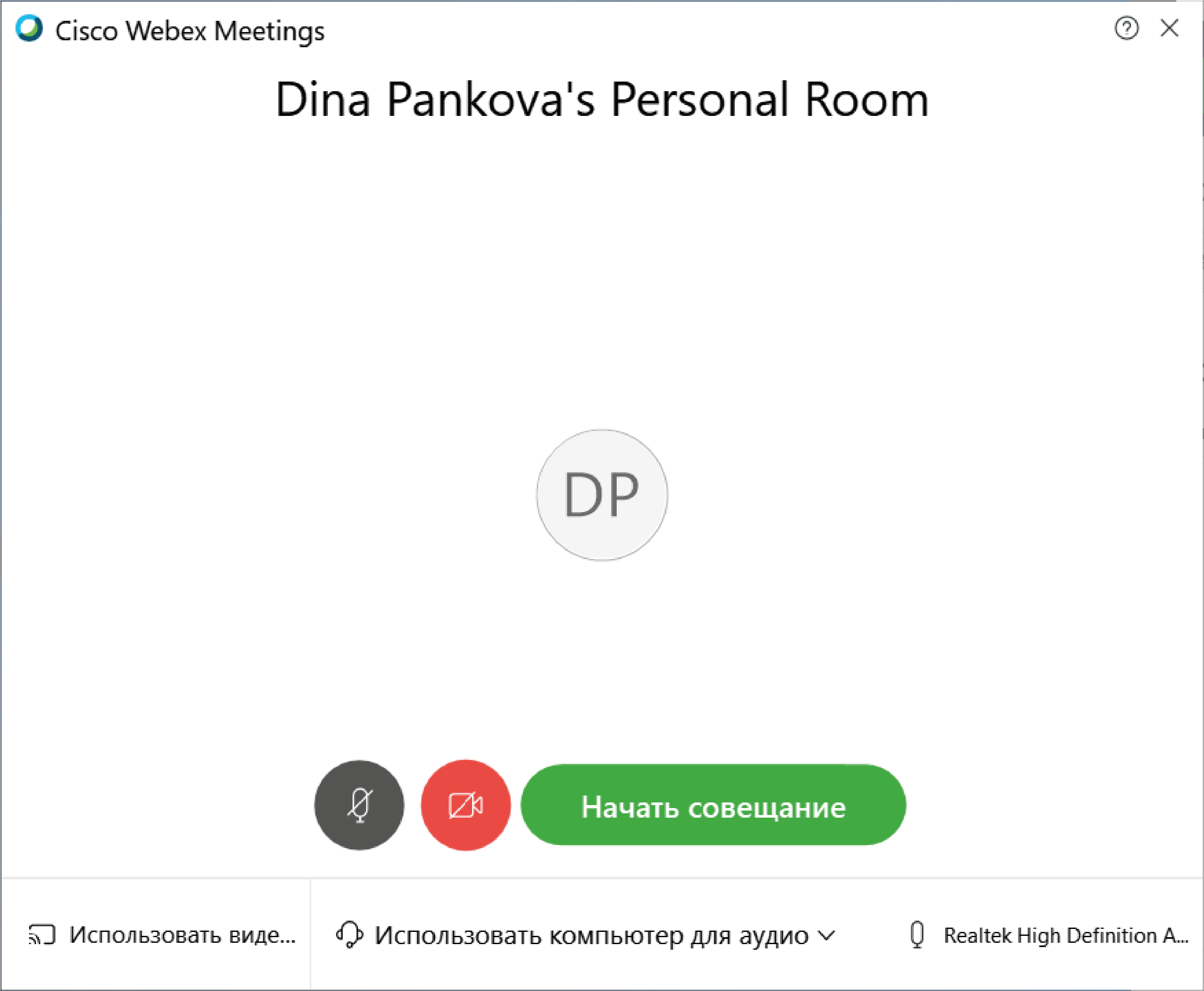 *Идентификатор персональной комнаты организатора является частью ссылки на персональную комнату. Например, если ссылка на персональную комнату – example.webex.com/meet/nameroom, идентификатор персональной комнаты организатора – nameroom.