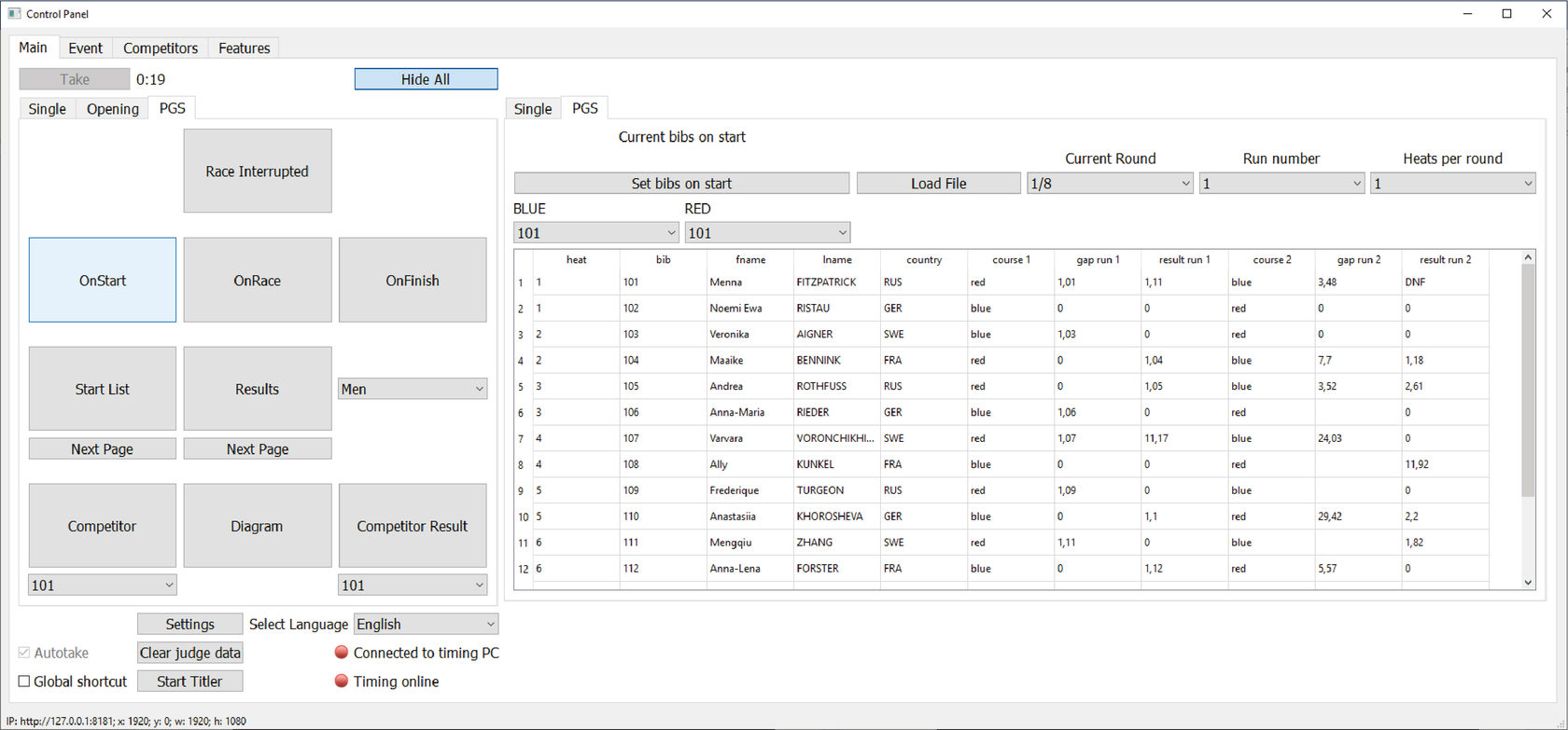 Для титра Спортсмены готовы к старту нажмите кнопку OnStart
